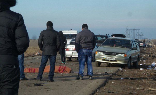Как стало известно, гражданский автобус, пытаясь объехать большую очередь из авто, заехал частично на обочину, где и подорвался на мину. В результате 4 погибших и множество раненых.
