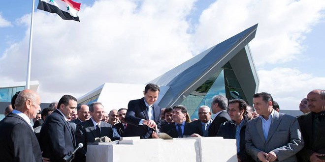 Президент САР Башшар Аль-Асад заложил первый камень в фундамент проекта жилищного строительства в квартале Басатин Ар-Рази в столичном районе Меззе. http://sana.sy/ru