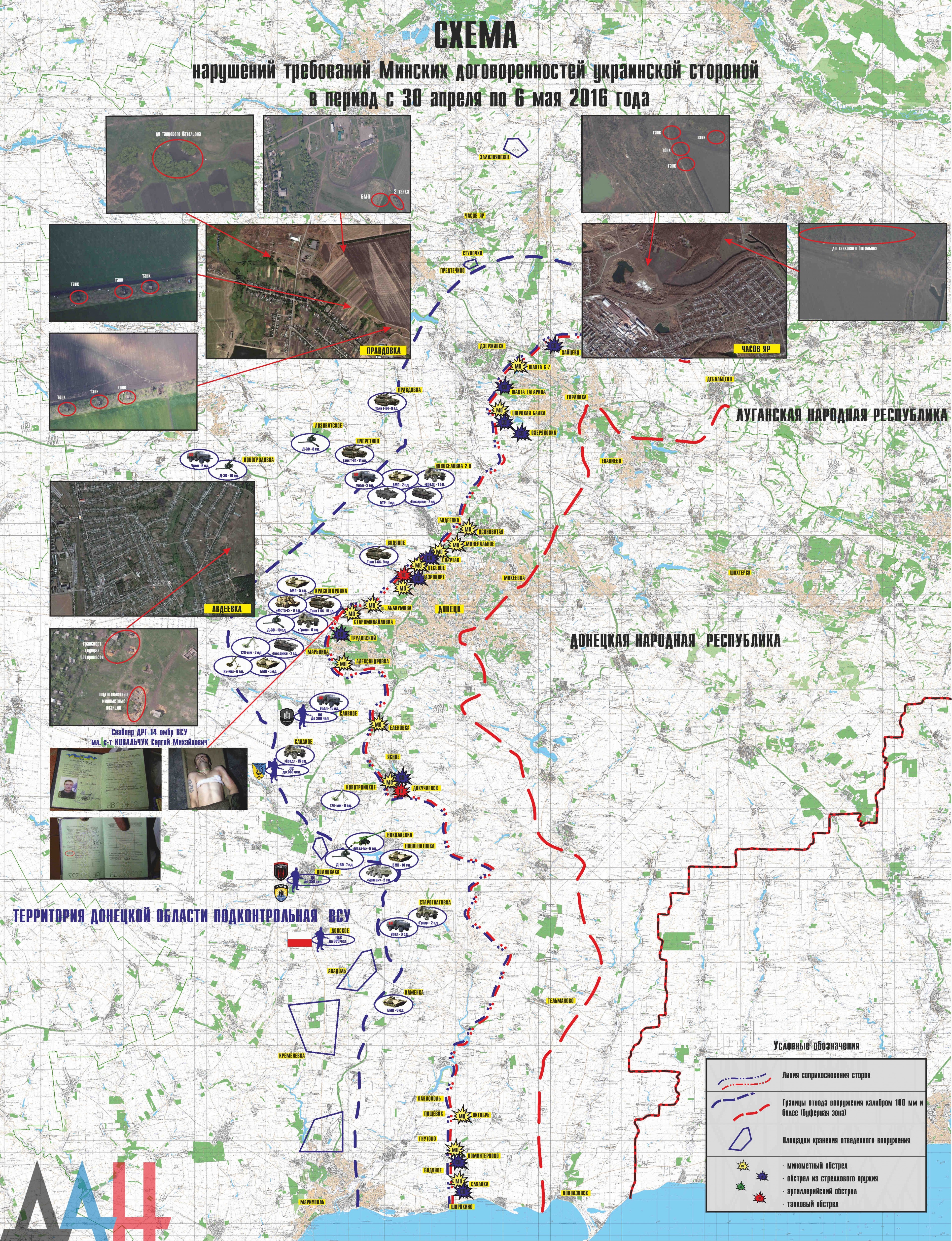 Сводка от МО ДНР 6 мая 2016 года. Украинские каратели 604 раза обстреляли территорию Республики