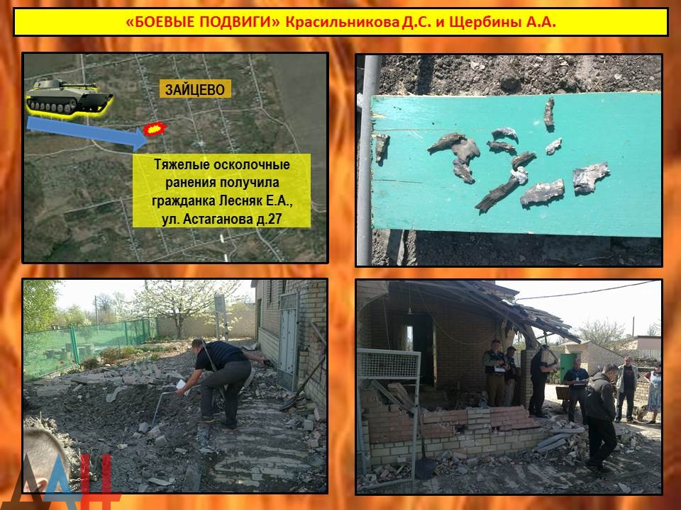 Напомним, 17 апреля с позиций 17 отдельного батальона 57 омбр был произведен обстрел поселка Зайцево с применением танков, САУ и минометов калибра 82 мм. В результате обстрела множественные осколочные ранения получила мирная жительница поселка, разрушен пункт выдачи гуманитарной помощи и три жилых дома.