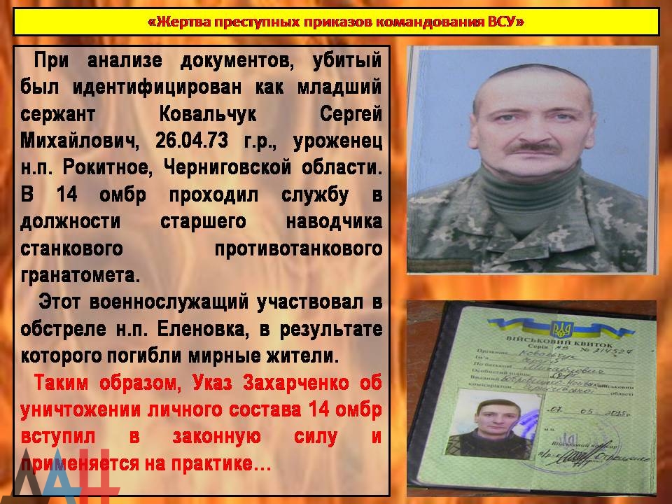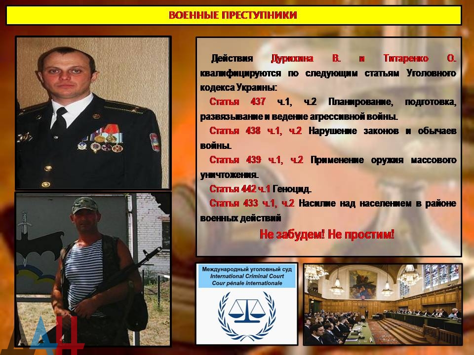 И вот сегодня Минобороны ДНР обнародовало данные о двух украинских офицерах, причастных к этой бойне – это командир батальона 14-й отдельной механизированной бригады подполковник Валерий Дурихин и начальник разведки этого же подразделения подполковник Олеге Титоренко.