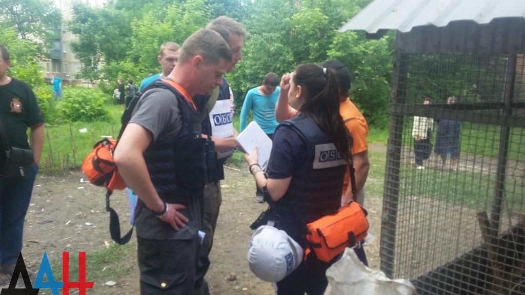 Осмотр поврежденных зданий также проводят представители Специальной мониторинговой миссии ОБСЕ.
