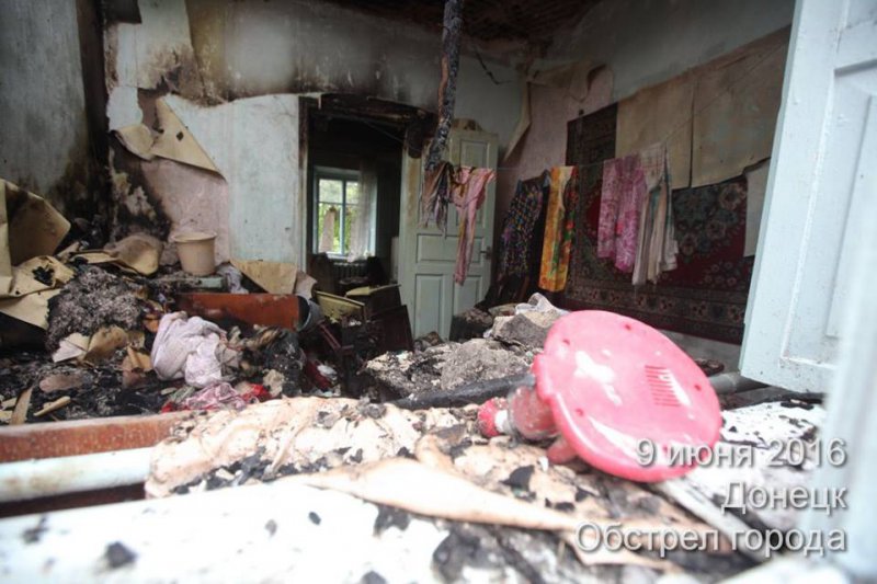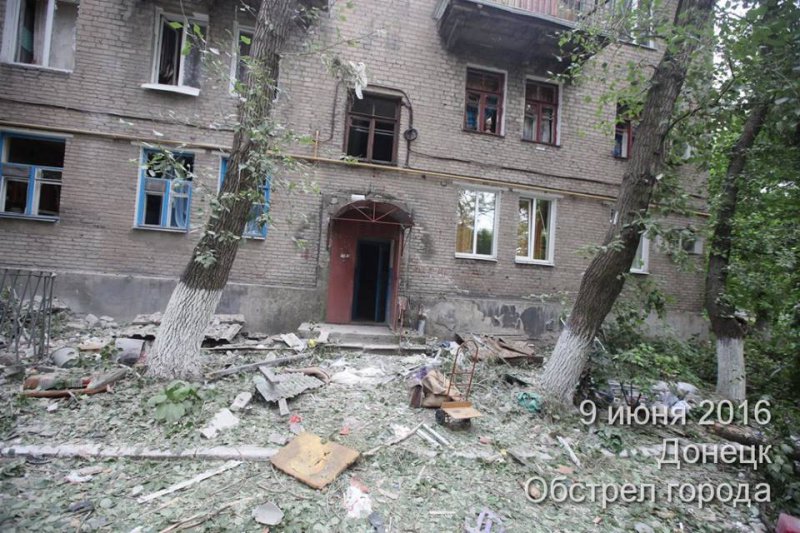 Последствия обстрела Куйбышевского района Донецка. 09.06.16