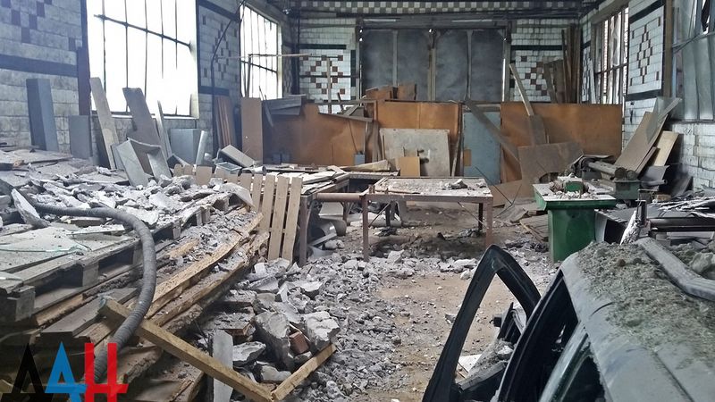 В Киевском районе Донецка повреждения получили здания двух предприятий. В ходе ночного обстрела прямым попаданием украинского снаряда пробита крыша и повреждены стены строительного предприятия на улице Новороссийская, 9. Пострадало и здание завода по производству полиэтилена. На момент обстрела там находилось 12 человек. Они успели спуститься в укрытие, поэтому жертв среди сотрудников нет.