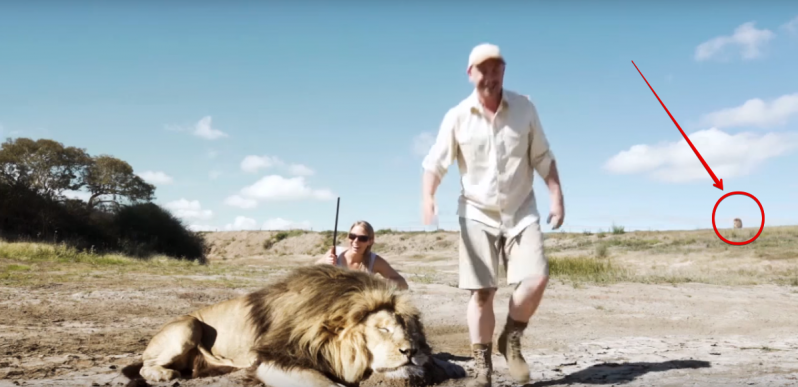 Парочка решила сделать эффектную видеосъемку с телом убитого ими льва. Они увлеклись настройкой своей видеокамеры и потеряли бдительность... В это время внезапно появился еще один агрессивный хищник, который и застал охотников врасплох.