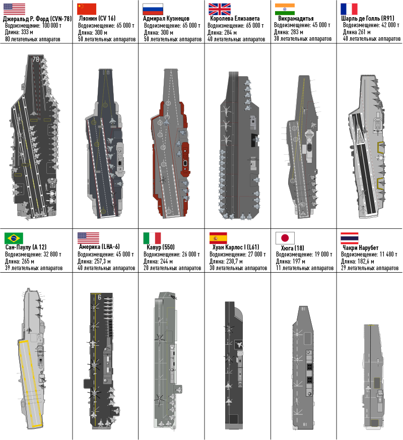 Возглавляя авианосные ударные группы, авианосцы являются оперативно-тактически высокомобильными боевыми единицами, позволяющими быстро концентрировать значительные силы в любой области Мирового океана. На данный момент корабли такого класса находятся на вооружении 11 стран.