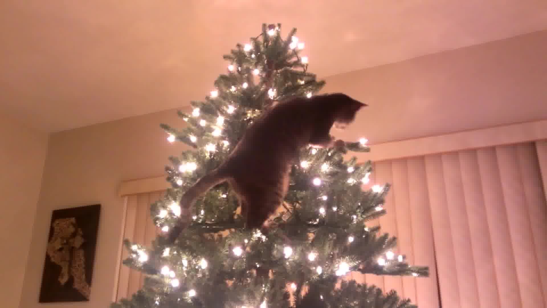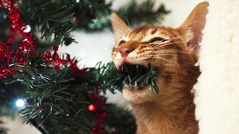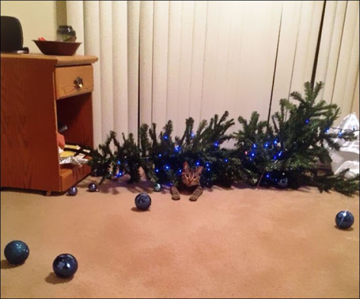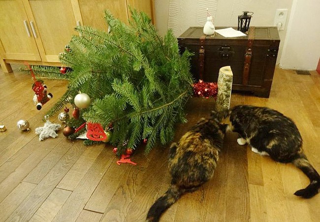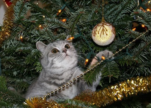 Непростые отношения кошки и новогодней елки