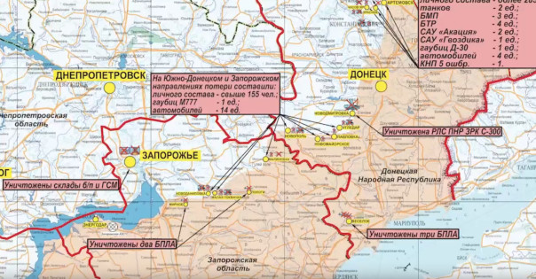 На Херсонском направлении в результате огневого поражения за сутки уничтожено до 20-ти украинских военнослужащих, три автомобиля, а также одна пушка «Гиацинт-Б». Кроме того, в районе города Николаев уничтожен склад боеприпасов ВСУ.