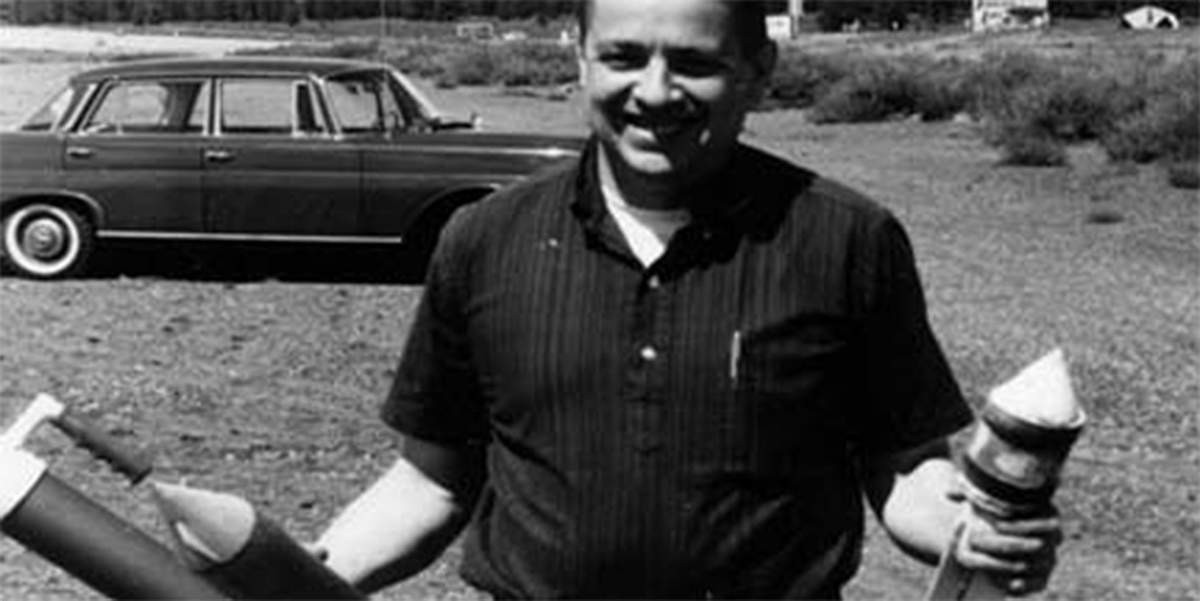 Изобретатель пневмопушек Френк Парсольнет с прототипами снарядов