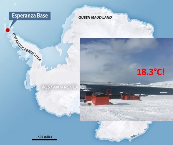 В заголовке новость о рекордно высокой температуре воздуха, что зафиксировали на антарктической станции Эсперанса 6 февраля.