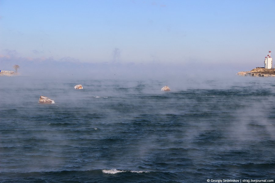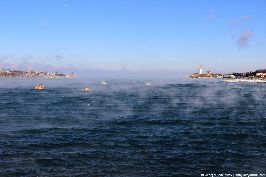 Море продолжает парить и чем ниже температура воздуха тем сильнее парит море