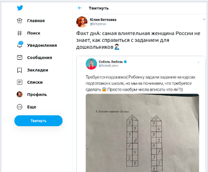 Некоторое время назад в своем Twitter-аккаунте подруга скандального блогера Алексея Навального выложила пост, который поразил всех, в том числе и преданных подписчиков. В нем она просит помочь разобраться с самой элементарной детской задачкой по математике уровня первого класса.