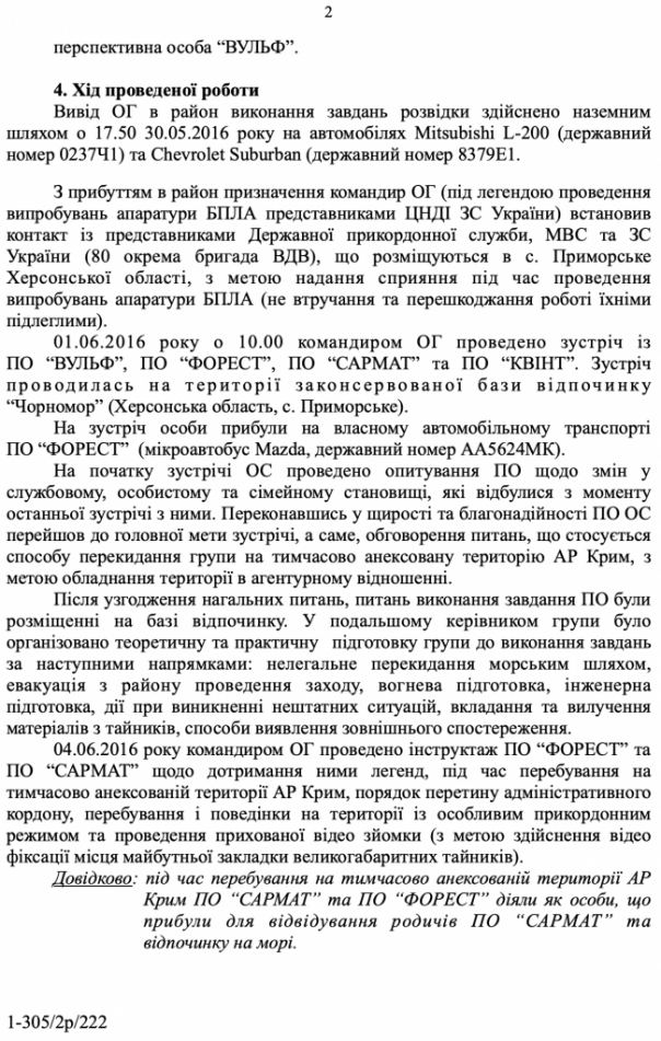 В мае 2016 года из претендентов были отобраны все диверсанты для проникновения в Крым. Каждая кандидатура проходила особую проверку на надежность. Но собеседования и тренинги, о которых упоминается в документах ГУР МОУ, были, скорее, обыденностью — главную проверку диверсанты прошли годом ранее в Донбассе. Для действий в Крыму отбирали лишь тех, кто повязан кровью, чтобы не «забуксовали» и «не дали заднюю». Таких в нынешней Украине тысячи и тысячи людей — озлобленных, загнанных в тупик нацизма, из которого оставляют лишь один выход — войну с Россией «разом і до кінця».
