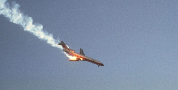 "Боинг" заметил, что некий болт имеет тенденцию к раскручиванию, и выдал директиву посадить болт на клей. При выполнении этих работ криворукий техник не поставил нужную шайбу, и болт-таки раскрутился. При выпуске закрылков перед посадкой болт выпал в неудачное место. А после уборки закрылков он пробил топливный бак, топливо попало на горячий двигатель, что вызвало пожар.