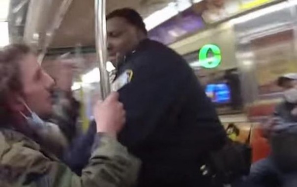 В метро Нью-Йорка чёрный коп избил пассажира. Видео 18+